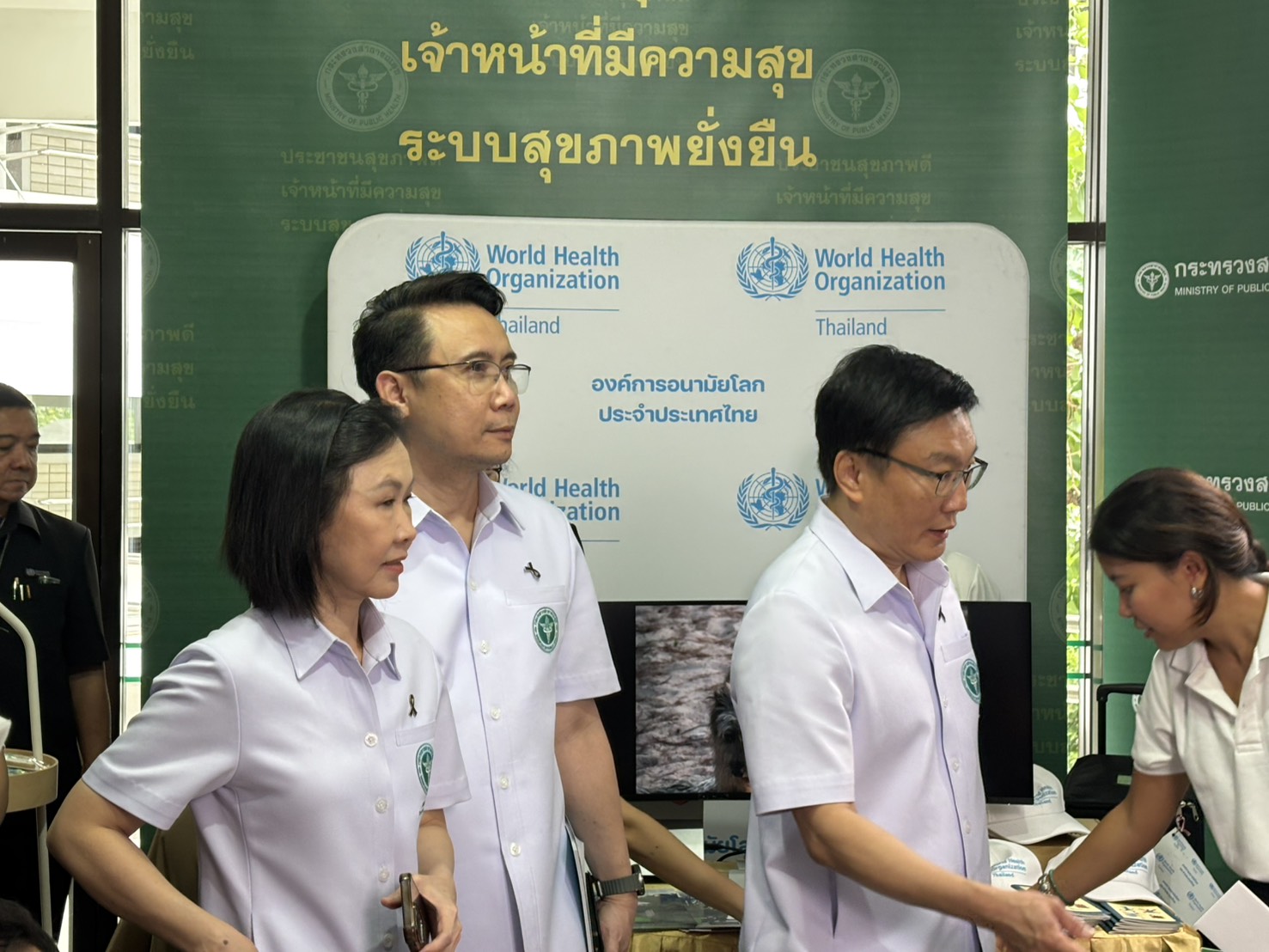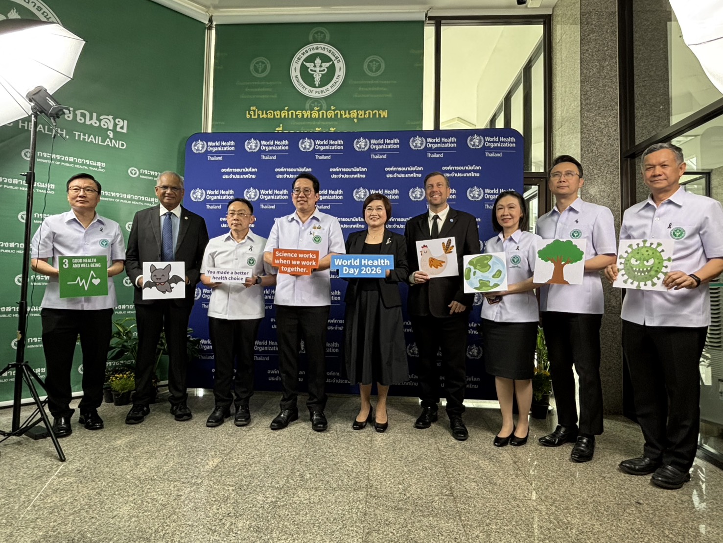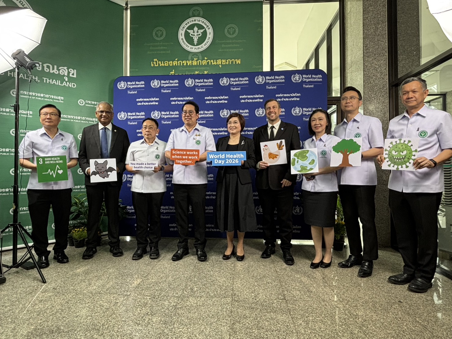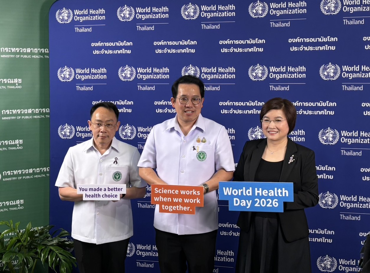 วันพุธที่ 1 เมษายน 2569 ศูนย์ความร่วมมือระหว่างประเทศ ได้เข้าร่วมกิจกรรมเนื่องในวันอนามัยโลก ประจำปี 2569 (World Health Day 2026) ณ บริเวณโถงหน้าห้องประชุมชัยนาทนเรนทร อาคาร 1 ชั้น 2 สำนักงานปลัดกระทรวงสาธารณสุข ภายใต้แนวคิด “Together for Health. Stand with Science” โดยได้รับเกียรติจาก นายพัฒนา พร้อมพัฒน์ รัฐมนตรีว่าการกระทรวงสาธารณสุข เป็นประธาน พร้อมด้วย นพ.สมฤกษ์ จึงสมาน ปลัดกระทรวงสาธารณสุข Dr. Ailan Li ผู้แทนองค์การอนามัยโลกประจำประเทศไทย ผู้แทนจากองค์การอาหารและเกษตรแห่งสหประชาชาติ (FAO) และผู้บริหารระดับสูงของกระทรวงสาธารณสุข เข้าร่วมงาน